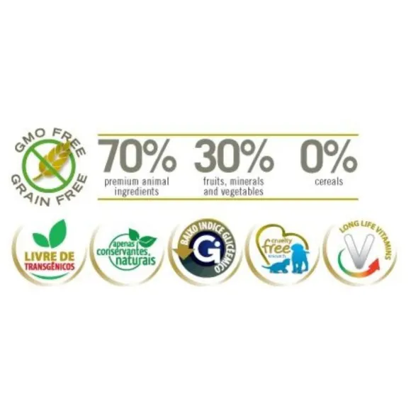 Harina De Vísceras De Pollo (Mín. 15%), Huevo Deshidratado, Harina De Pescado, Proteína Aislada De Cerdo, Almidón De Papa, Aceite De Pollo, Aceite De Pescado, Pulpa De Remolacha, Fibra De Guisante, Alfalfa Deshidratada (Mín.1%), Lignocelulosa, Psyllium (Mín.0,18%), Levadura De Cerveza, Zanahoria Deshidratada, Espinaca Deshidratada, Naranja Deshidratada, Manzana Deshidratada, Arándano En Polvo, Extracto De Granada (Mín. 0,08%), Extracto De Té Verde (Mín. 0,01%), Extracto De Aloe Vera (Mín. 0,05%), Extracto De Cúrcuma (Mín. 0,05%), Betacaroteno, Luteína, Fructo-Oligosacáridos, Manano-Oligosacáridos, Dl-Metionina, Taurina, L-Carnitina, Sulfato De Condroiditina, Sulfato De Glicosamina, Extrato De Yucca, Zeolita, Hidrolizado De Hígado De Cerdo, Vitaminas (A, D3, E, K3, B1, B2, B6, B12, C, Biotina, Niacina, Ácido Pantoténico, Ácido Fólico, Cloruro De Colina), Cloruro De Potasio, Fierro Orgánico, Cobre Orgánico, Zinc Orgánico, Manganeso Orgánico, Selenio Orgánico, Yodato De Calcio, Propionato De Calcio, Antioxidante Natural (Concentrado De Tocoferoles).