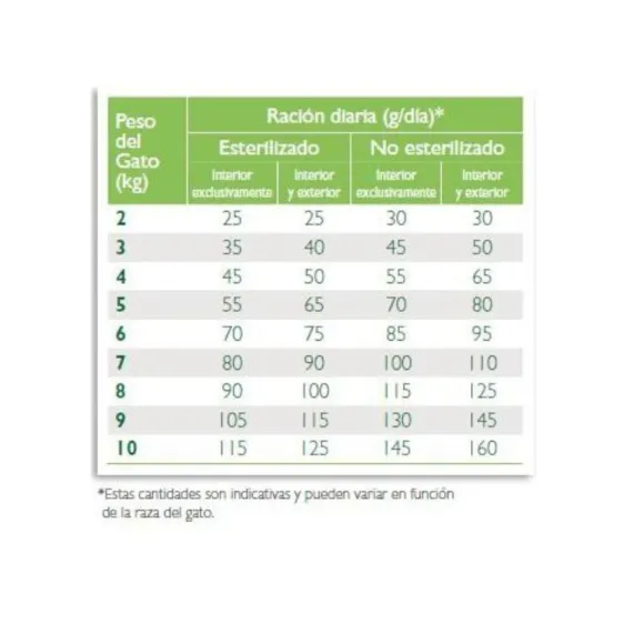 Una Vida Sedentaria Predispone A Los Gatos Adultos, Tanto Esterilizados Como No Estirilizados, A Un Sobrepeso. Este Alimento Ayuda A: – Mantener Un Peso Óptimo, Conservar La Masa Muscular Y Limitar El Depósito De Tejido Graso. – Ayuda A Mantener Un Sistema Urinario Saludable. – Ayuda A Mantener Una Función Renal Saludable. – Ayuda A Limitar La Formación De Placa Dental Y Sarro Y Contribuye A Una Buena Salud Oral Y Dental. – Ayuda A Mantener Una Piel Saludable Y Un Pelaje Brillante. – Ayuda A Asegurar Una Flora Digestiva Equilibrada Y Saludable, Unas Heces Bien Formadas Y A Reducir Su Olor. – Ayuda A Asegurar Un Nivel Estable De Glucosa En La Sangre.