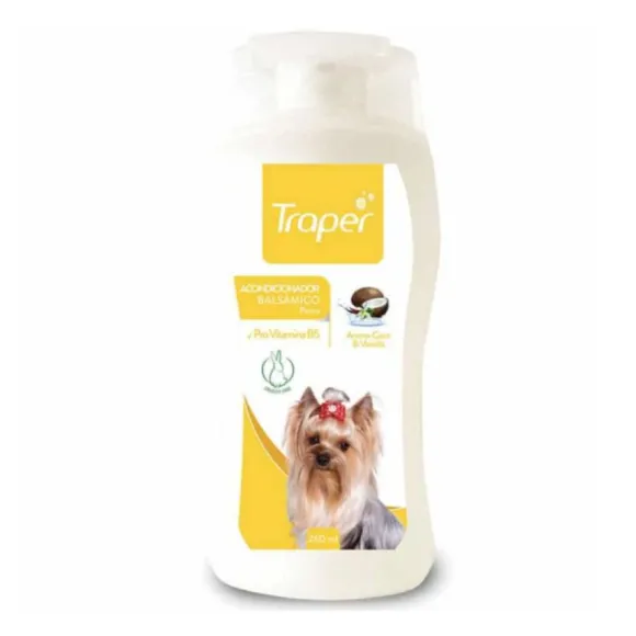 Traper® Acondicionador Balsámico Para Perro, Cuida Y Protege La Piel De Tu Peludo. Formulado Con Pro Vitamina B5 Que Nutre, Suaviza E Hidrata La Fibra Capilar, Facilitando El Peinado Y Desenredo De Nudos. Hidratación Especial Para Tu Perro Con Suave Y Delicado Aroma. Traper® Lleva Más De 10 Años Desarrollando Productos Para Perros Y Gatos. Línea De Higiene, Cuidado Y Belleza Para Mascotas. Las Ventajas De Este Producto Son: