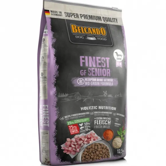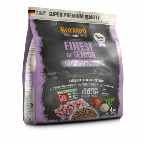 Finest Gf Senior De Belcando® Es Un Alimento Para Perros Adultos Mayores De Razas Pequeñas Y Medianas Con Sensibilidad A Los Cereales O Para Perros Adultos Con Exceso De Peso. Los Mejores Ingredientes Como El Amaranto, El Krill Nutritivo Y La Carne De Ave Fresca Proporcionan A Los Perros Todo Lo Que Necesitan En Edades Avanzadas. Mezclado Con Agua Tibia, Se Puede Crear Una Deliciosa Salsa Para Convertir Belcando® Finest Gf Senior Incluso Para Perros Finos, En Una Delicadeza.