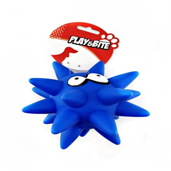 Play & Bite Es Un Juguete Para Perros Pelota Spiny De Vinilo Con Sonido Resistente Para Que Tu Perro Se Divierta Persiguiéndola Y Mordiéndola Y Haciéndola Pitar.