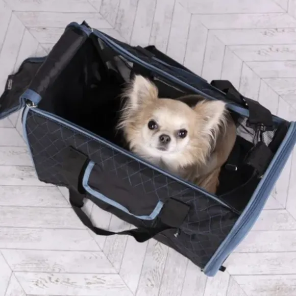 Lleva A Tu Pequeño Amigo Peludo Contigo A Todas Partes Con Esta Resistente Y Práctica Bolsa De Transporte Para Perros De Poliéster. Con Una Capacidad De Carga De Hasta 7 Kilos Y Un Marco Reforzado, Esta Bolsa Es Perfecta Para Llevar En El Camino. Los Pies De Goma Evitan Que La Bolsa Se Moje Y Las Dos Cremalleras Se Pueden Cerrar Con Un Candado Giratorio. En El Interior Encontrarás Un Lazo Para Sujetar A Tu Perro Y La Funda Desmontable Se Puede Lavar Hasta 30 Grados. Llévala Como Bolso De Hombro O En La Mano Y Fíjala En Un Carrito.