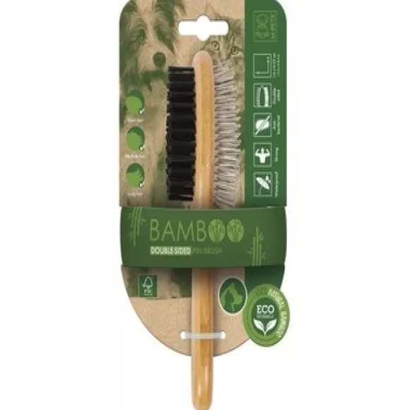M-Pets Bamboo Cepillo De Doble Cara Es La Mejor Opción Para Arreglar, Peinar, Desenredar, Activar La Circulación Sanguínea, Distribuir Los Aceites Naturales De Tu Mascota Y Promover El Brillo Y Brillo Del Pelaje De Tu Animal.