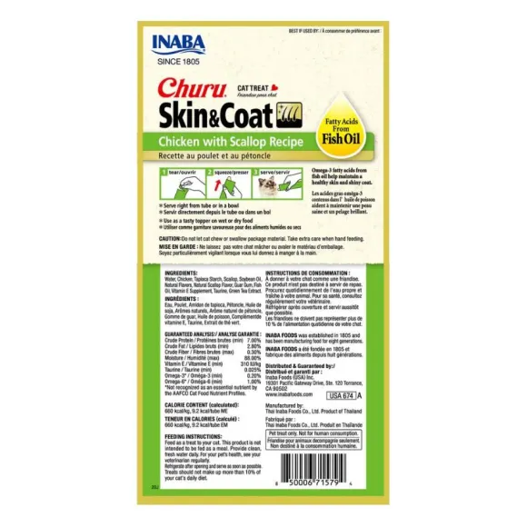 ¡Estas Golosinas Lamibles Para Gatos Están Hechas Con Ingredientes Naturales! Disponible En Cuatro Deliciosas Variedades, El Churu Skin & Coat De Pollo Tiene Un Alto Contenido De Humedad Que Los Felinos Necesitan Para Su Salud. Simplemente Abra Un Tubo Y Apriételo Un Poco Para Alimentar A Mano Estas Golosinas Sin Granos Ni Conservantes. También Puede Verterlos En Un Tazón O Usarlos Como Una Cubierta Sabrosa En Alimentos Húmedos O Secos.