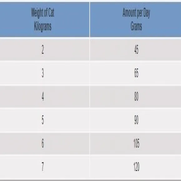 Peso Del Gato – Lbs (Kgs) Cantidad Por Día – Tazas (Gramos)