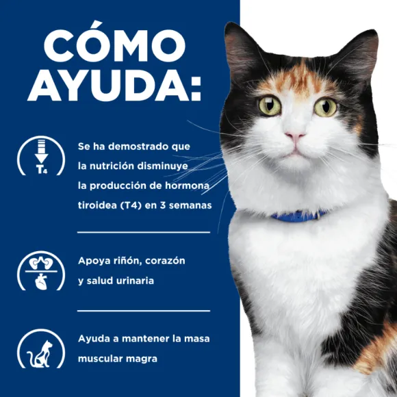 El Hipertiroidismo Es Un Trastorno Endocrino Frecuente En Los Gatos, Que Se Diagnostica Con Más Frecuencia En Gatos Mayores. Si Tu Gato Tiene Hipertiroidismo, Su Tiroides Tendrá Un Tamaño Mayor De Lo Normal Y Producirá Una Cantidad Excesiva De Hormonas Tiroideas, Algo Que No Es Deseable. Algunos De Los Síntomas Que Con Frecuencia Aparecen Como Consecuencia Del Hipertiroidismo Son: Pérdida De Peso, Aumento Del Apetito Y De La Sed, Hiperactividad, Diarrea O Vómitos Y Mal Estado De La Piel Y El Pelo. Si No Se Trata, Puede Producir Problemas Graves Que Pueden Llegar A Ser Incluso Letales. La Buena Noticia Es Que, En La Mayoría De Los Casos, El Hipertiroidismo Puede Controlarse Con Una Atención Veterinaria Adecuada. Prescription Diet™ Y/D™ Feline Es El Primer Alimento Clínicamente Probado Que Ayuda A La Salud Tiroidea De Tu Gato Sin Necesidad De Medicación, Tratamiento Con Yodo Radioactivo O Cirugía.