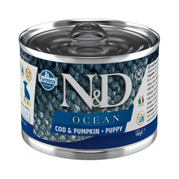 Dog Ocean Cod Pumpkin Puppy Mini Es Un Alimento Completo Y Equilibrado, Garantiza Todas Las Necesidades Nutricionales De La Mascota Es Decir Sustituye Una Alimentación Por La Calidad De Materias Primas Y Digestibilidad. Gracias A Un Menor Contenido De Humedad En Comparación Con Los Competidores, La Gama De Alimentos Húmedos De N&D Tiene Un Mayor Nivel De Materia Seca, Es Decir Más Alimento.
