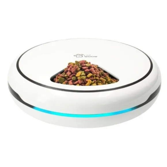 Pet Wow Dispensador De Mascotas Para 5 Alimentos Es Un Plato Con 5 Separaciones Para Dividir Sus Alimentos, Puede Elegir El Mas Sabroso En Cada Momento Del Día. Además, Tiene Conexión De Usb Y Un Panel Digital.