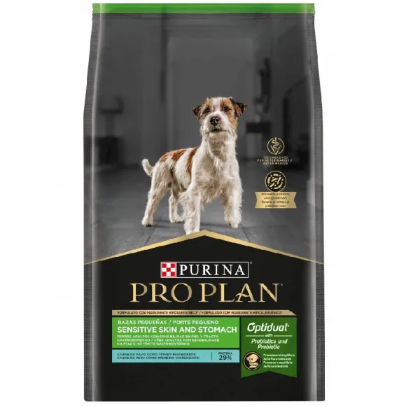 Pro Plan Sensitive Skin & Stomach Para Razas Pequeñas Está Formulado Con Carne De Pavo Como Primer Ingrediente, Fuente Alternativa De Proteína Hipoalergénica En Perros No Expuestos Previamente E Ideal Para Perros Sensibles. Incluye La Tecnología Exclusiva Optidual, Que Combina Prebiótico Y Probióticos Vivos Garantizados Que Contribuyen Juntos A La Salud Del Sistema Digestivo.