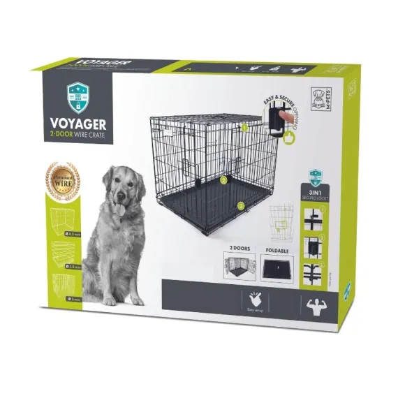 Transportador Para Perros De Metal Voyager, 2 Puertas, Cajón De Plástico, Cerradura Securo