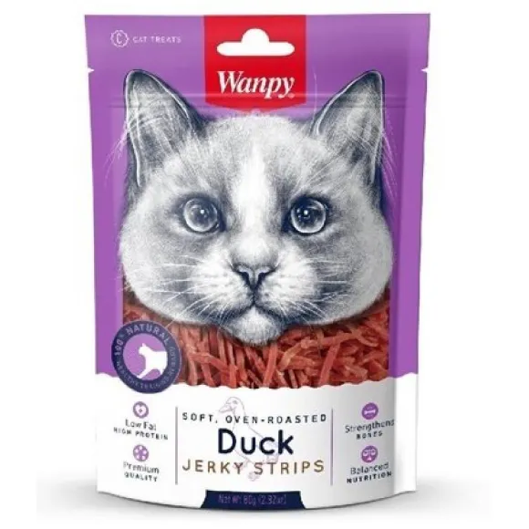 Snack Wanpy Duck, Deliciosas Tiras De Pechuga De Pato Para Gatos Adultos. Carne De Pato Y Pollo Real 100% Natural, Bajo En Grasas, Alto En Proteínas, Una Recompensa De Entrenamiento Saludable Para Gatos De Todos Los Tamaños